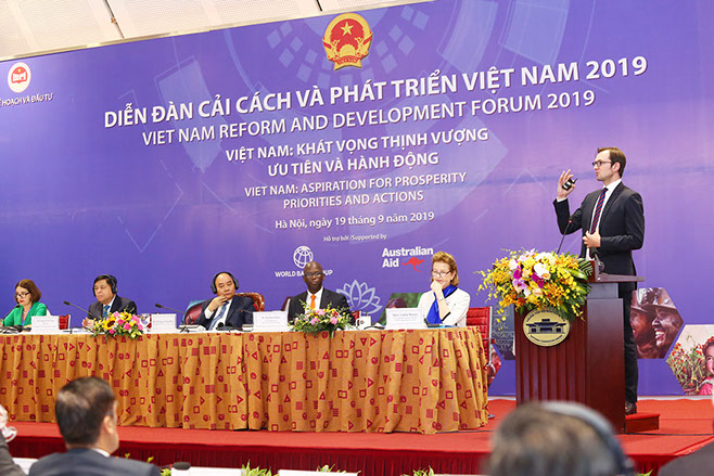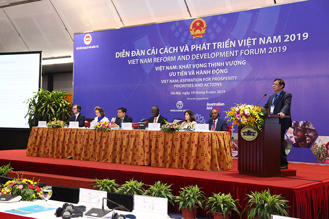 Diễn đàn Cải cách và Phát triển Việt Nam (VRDF) lần thứ hai năm 2019 với chủ đề “Việt Nam: Khát vọng thịnh vượng - Ưu tiên và hành động” vừa chính thức khép lại chiều qua (19/9) tại Hà Nội. Diễn đàn do Bộ Kế hoạch và Đầu tư (KH&ĐT) chủ trì, phối hợp với các đối tác phát triển tổ chức. Bộ trưởng Bộ KH&ĐT Nguyễn Chí Dũng và Giám đốc quốc gia Ngân hàng Thế giới tại Việt Nam Ousmane Dione đồng chủ trì Diễn đàn.